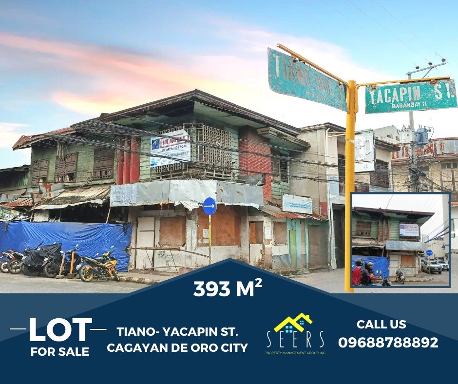 Ideal For: Office building, Commercial developmentSeize this rare opportunity to own a strategic commercial lot in the bustling central business district of Cagayan de Oro City! Situated along Tiano-Yacapin Street, this 393 sqm property offers unbeatable visibility and accessibility, perfect for a premium office building or commercial development.Show all description